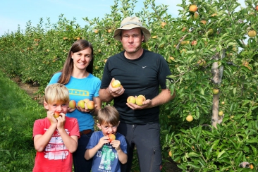 Steffi Friedrich (35) ist eine davon. Mit ihren beiden kleinen Kindern holt sie sich heute süßen Nachschub ins Haus. "Seit wir vor fünf Jahren her gezogen sind, kaufen wir unsere Äpfel nur noch hier", sagt sie. "Die sind einfach die besten!" Die ganze Familie ist im Betrieb tätig: Walter, Rainer, Gisela und Stefanie. Bald kommt Zuwachs in Form von Daniela Pfeiffer, die ihrem Rainer im Juni das Jawort geben wird. Dann steigt sie als frischgebackene Hoffmann in das Familienunternehmen ein. Einen Monat später übernimmt Rainer dann den Chefsessel am Obsthof.