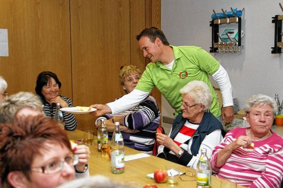 Damit die Kalorien von der Kaffeetafel gut verarbeitet werden, forderte Annette Meixner zum Sitztanz mit dem Thema "Apfel" in mehreren Etappen auf. Dabei wurde die beliebte Frucht drehend vom Baum gepflückt oder geschüttelt, vom Boden aufgelesen, gegenseitig zugeworfen und in den Korb gelegt. Anschließend hatte Obstbaumeister Rainer Hoffmann vom Obsthof Hoffmann in Neulußheim allerhand über den Apfel zu erzählen.